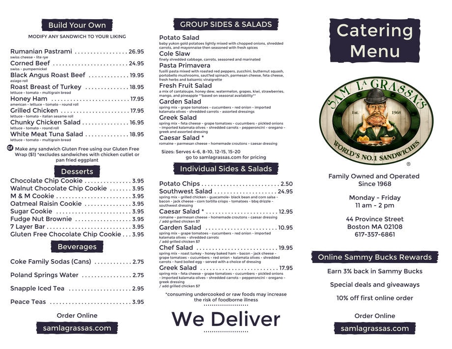 Sam La Grassa’s specializes in great sandwiches and personalized service. For over 38 years, our family run store at 44 Province Street has been the “Number 1 Sandwich Place in Boston.”